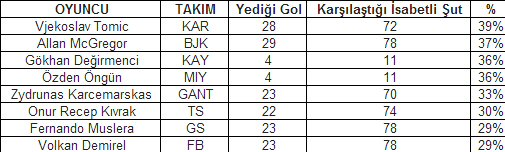 McGregor'un bu sezon kalesine gelen şutların gol olma oranı %37 oldu. İskoç kaleci böylece Karabükspor kalecisi Tomic'in (%39) ardından bu alanda 2.sırada yer aldı.