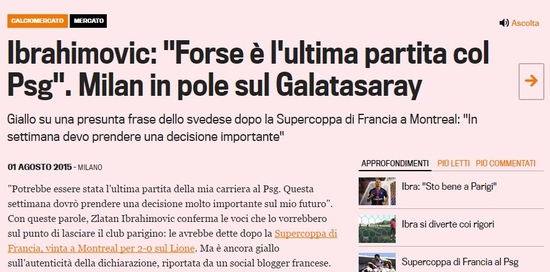 İtalya'nın saygın gazetelerinden La Gazzetta dello Sport, Galatasaray ve Milan'ın listesinde olan Ibrahimovic'in "Bu maç PSG'deki son maçım olabilir. Bu hafta geleceğimle ilgili önemli bir karar vereceğim." şeklinde bir açıklama yaptığını iddia etti. Bu sözler transfer gündemini alabora etti. Zlatan Ibrahimovic'e ait olduğu iddia edilen bu açıklamaların ardından bazı Fransız kaynaklar Ibrahimovic'in Lyon maçının ardından bu yönde bir açıklama yapmadığını iddia ederek gündeme gelen bu haberlerin gerçek dışı olduğunu belirtti.